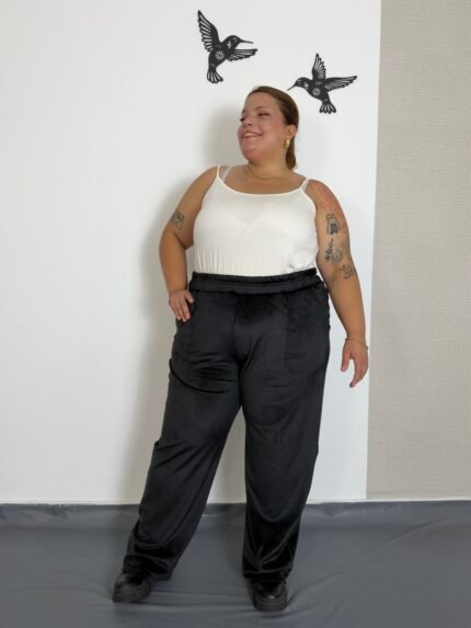 Chaleco de microfibra para mujer en talle especial color negro acolchado sin mangas