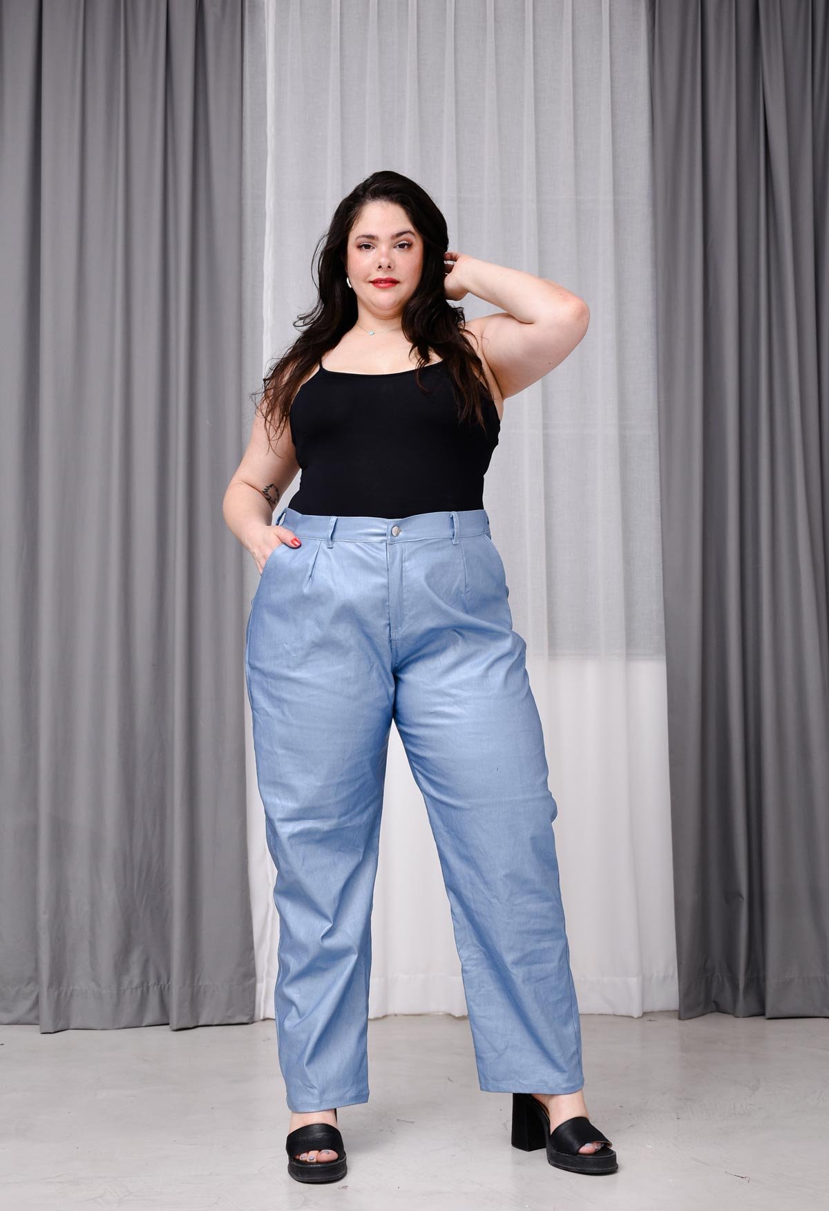 Tela bengalina engomada. Corte tipo sastrero con bragueta y bolsillo. Disponible en color Negro, Camel, marrón, Celeste, Gris Top