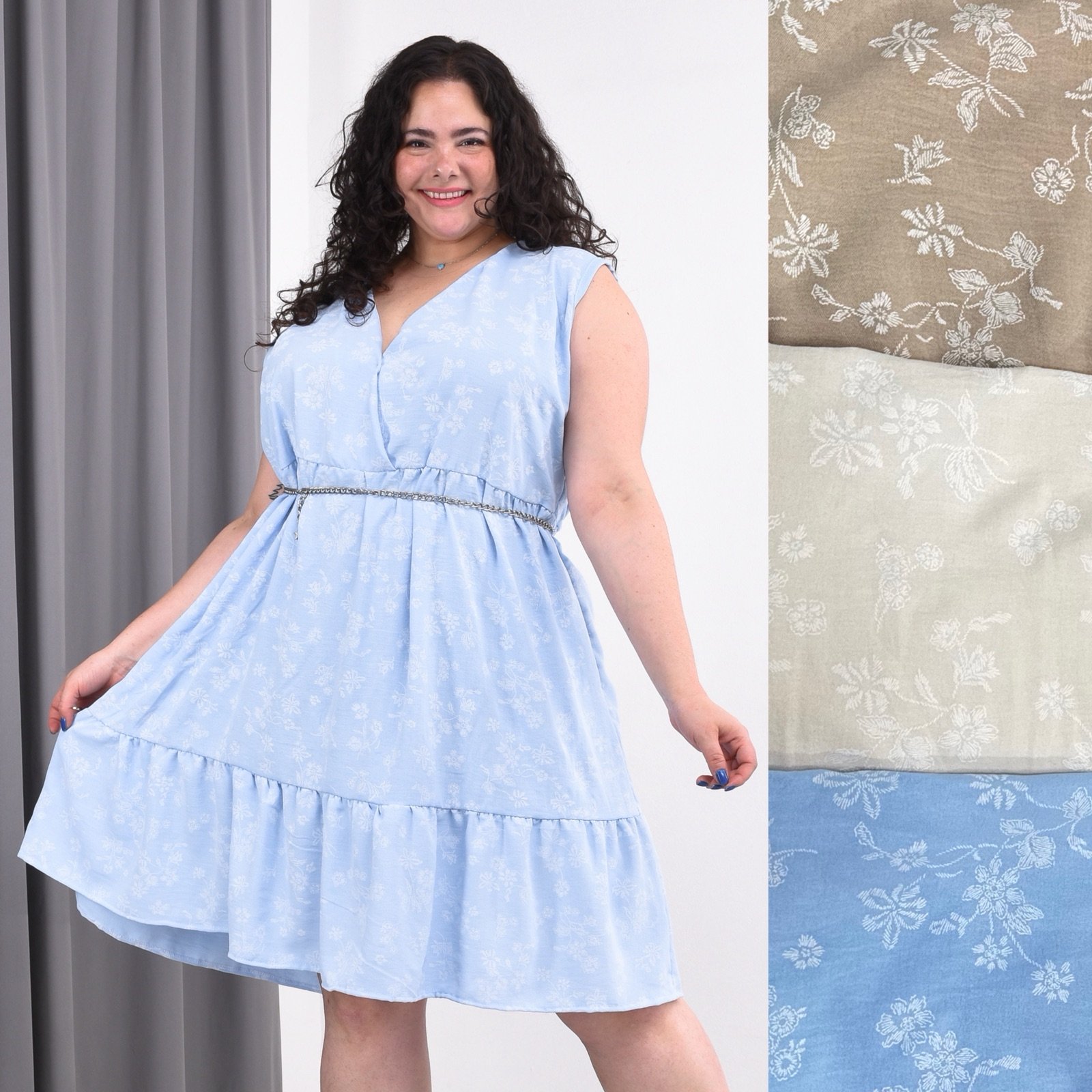 Tela Cey Bordado. Con vuelos escote cruzado.