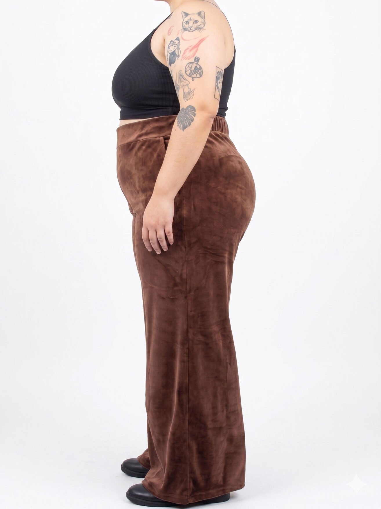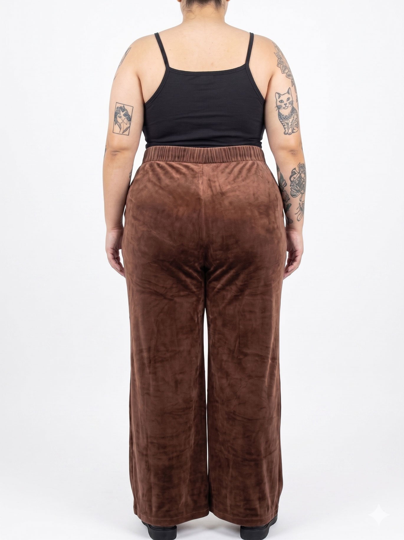 Pantalón plush bifaz con peinado uniforme, lleva una caída fluida y una textura aterciopelada.